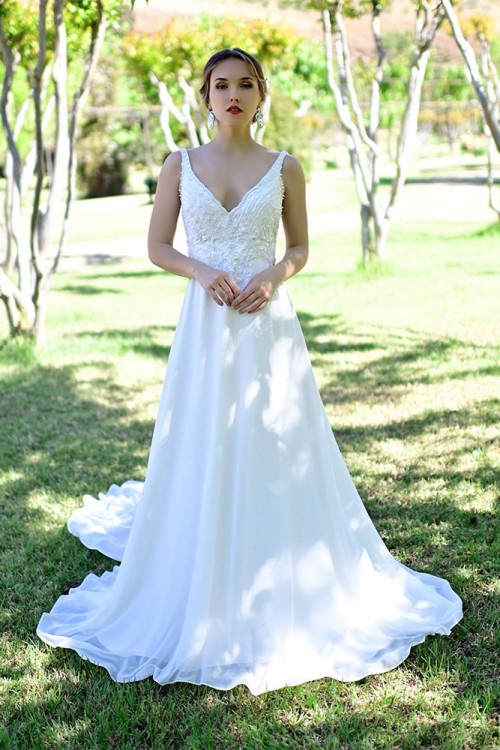 SedaSirenaTrompetaMedio PlatoPrincesaEncajePedreriaGasaCorte en ABordadoNoviaHarmonieUsado